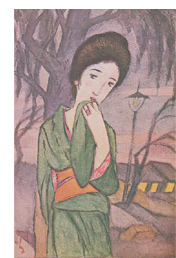 こうした色のコーディネートが実に自然にまとまっています。これらは夢二の色彩センスでそう描いたのかもしれないし、実際に女たちが着ているままに描いたのかもしれない。しかし、自然だ、という印象から、この時代の日本人はこうした色彩感覚を当たり前に持っていたようです。