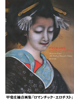 甲斐庄楠音の描くただキレイなだけではない、なんというか恐ろしいくらいの凄みを感じさせ、一度見たら忘れられない強烈な印象を与える(岸田劉生が言うところの「デロリ」の美をたたえた)女性像は、久世光彦の『怖い絵』のなかでもクノップスの「愛撫」やビアズレーの「サロメ」などと一緒に紹介されていて、最近では(私は未読なのですが)岩井志麻子の『ぼっけえ、きょうてえ』の表紙になったり、NHKの「日曜美術館」でも特集されたので目にされた方も多いと思いますが、楠木正成の末裔(!)として明治二十七年に京都の旧旗本の家に生まれた甲斐庄楠音は、「妻妾同居をさせる『お大名の殿様』ぶりの」父親と御所に出入りする家柄の母親のもとで育ち、幼少の頃は色白で美しかった楠音を溺愛した父親の趣味で「女の子の着物を着せられ、家に伝わる皇女和宮の羽子板を愛で、雛人形遊びなどを」好み、長じてからも「素人歌舞伎で演じる女形の女装に限りない喜びを感じていた」という、まあ、かなり特異な生い立ちで、「自らの女装姿を写真に撮」って自分自身をモデルにして女性像を描くという「独特の制作スタイル」を生みだし、大正七年に京都画壇で「鮮烈なデビュー」を果たすも、八年後に出品した「風船と女」という作品が土田麦僊に「穢い絵」と酷評されて陳列を拒否されるという事件が起こり、その後は徐々に画壇から離れ、四十六歳のときに溝口健二と出会って映画界に入ったという、当時としてはかなり異色な経歴の持ち主です。